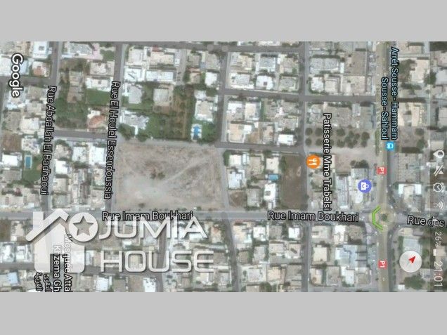 Á vendre Deux (2) lots de terrain à usage commercial, idéalement situé dans l'un des plus beaux quartiers de Khzema , Rue Imam Boukhari entre rond-point Les Palmiers (viennoise) et rond-point SIAB, avec une superficie de 606 m² (303m² chacun) et de 26.4m de profondeur, ayant comme atout une façade de 23m² sur la route, possibilité de bâtir R+8