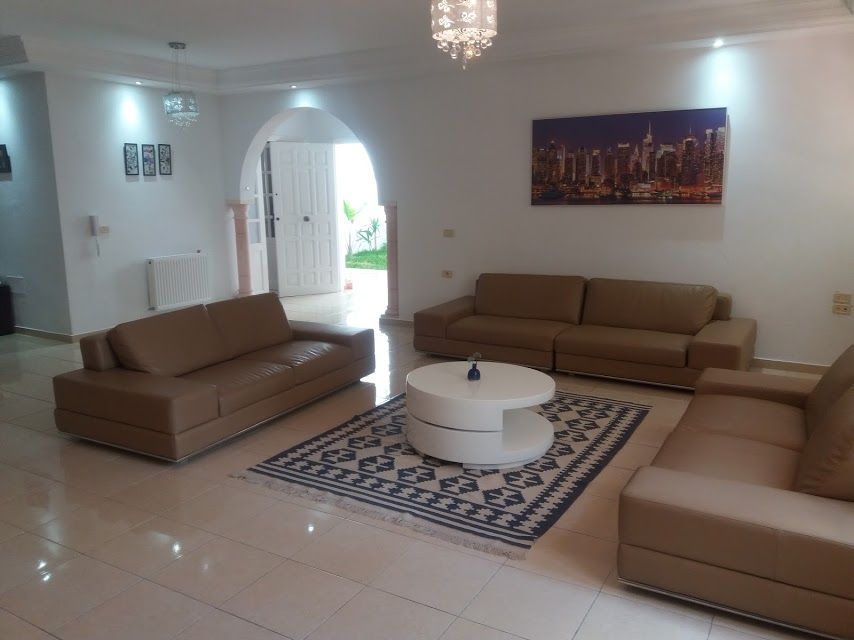 une jolie villa style américain richement meublée avec tout confort au plein centre de hammamet dans un cartier calme prés de toute les commodités. vous profiterez d'un luxueux et d'un spacieux endroit ou vous passer d'agréable vacances, composé d' un grand salon spacieux et lumineux, une salle à manger, 4 chambres , grande cuisine bien équipée, salle de bain, salle d’eau avec douche, une très belle terrasse qui donne sur le jardin avec internet wifi(3 climatiseurs),lave vaisselle, lave linge, micro onde