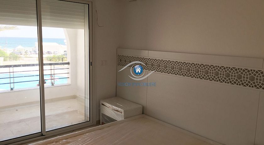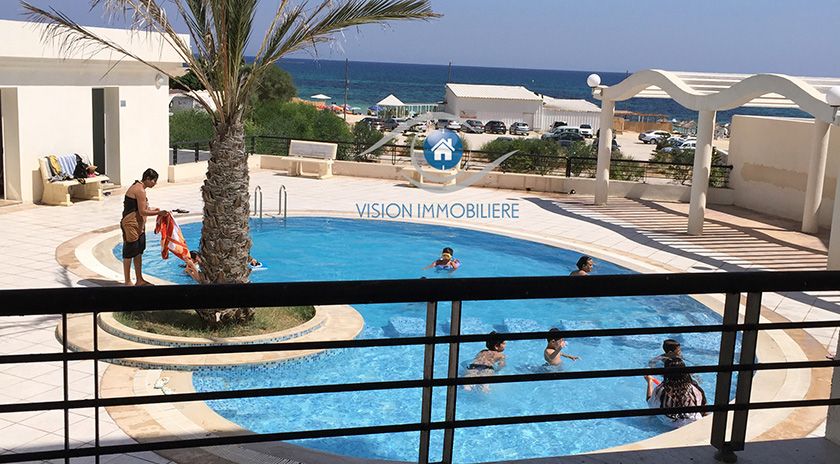 Vision Immobilier propose Cet appartement de charme occupe le réez de chaussée d’une résidence pieds dans l’eau bien gardée avec piscine et proche de toutes les commodités à Hammamet Nord. L’entré possède un spacieux salon dispose un terrasse et des baies vitrées offre une vue panoramique sur la piscine et la mer. La cuisine est aménagée et bien équipée avec divers éléments de rangement fonctionnels et possède un séchoir. Le compartiment nuit est composé de deux chambres à coucher dont chacune possède son propre dressing. Elles se partagent une salle de bain avec cabine de douche. Une place de parking au sous-sol et disponible. Pour une éventuelle visite, ou pour avoir plus d'informations merci de contacter votre conseiller en immobilier Hamza Khedira , de l’agence vision immobilier sur 53265000.53265000.