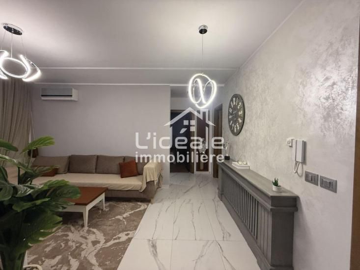 L’Idéale Immobilière vous propose à la vente un magnifique appartement S+2 de très haut standing d’une superficie de 110 m², situé dans une résidence moderne, sécurisée et dotée d’une superbe piscine, à Hammamet Nord – AFH Mrezgua.