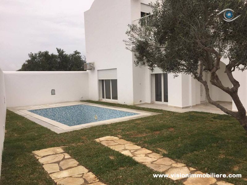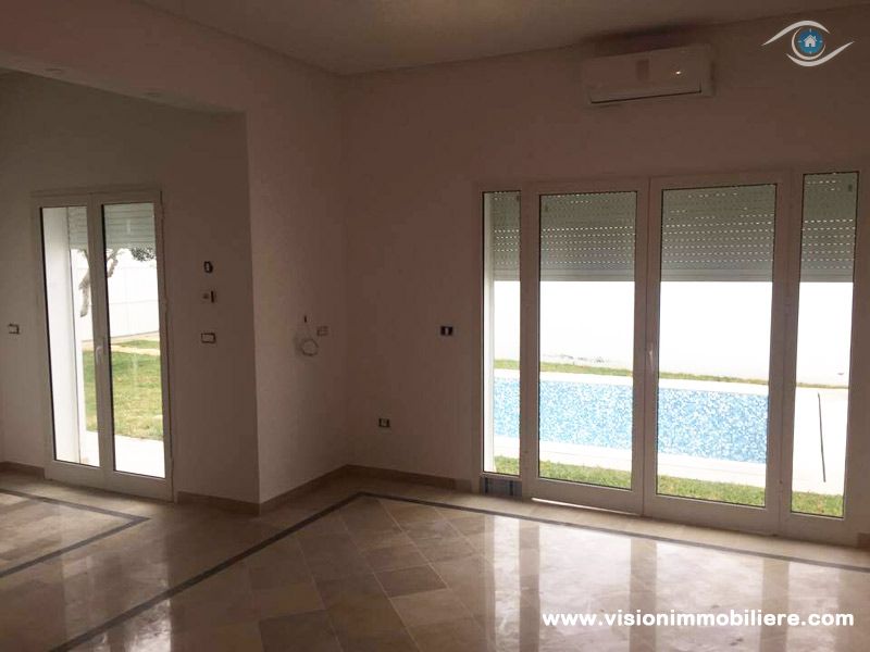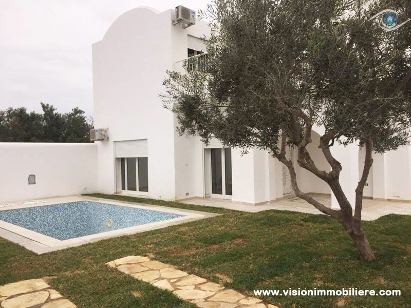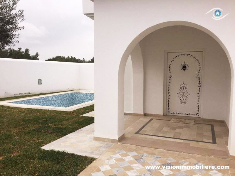 Vision Immobilière vous proposes, Cette villa est nouvellement construit se situé à Hammamet Nord de 5 minute de la plage, elle se distingue par son style, et bénéficie d'un jardin gazonné qui offre plusieurs espaces de détente dispose d’une piscine. L'entrée ouvre sur un salon spacieux et bien éclairé qui fournit un espace de vie est composée d’une salle à manger et d’un coin séjour qui offre une vue dégagée sur le jardin et la piscine grâce ses grandes ouvertures. Une chambres à coucher avec dressing et se partageant une salle d’eau. La cuisine dispose de plusieurs éléments de rangement, une salle d’eau pour les invitées compléter la partie jour. Un escalier nous mène vers la partie nuit, cette dernière, totalement indépendante, abrite deux, suites parentale munie par des salles de bain avec douche. Bénéficient chacune d'un dressing pour plus de rangements ; offre plus de confort et fonctionnalité. Donne sur une grande terrasse. Un abri peut contenir deux voitures est à la disposition.
