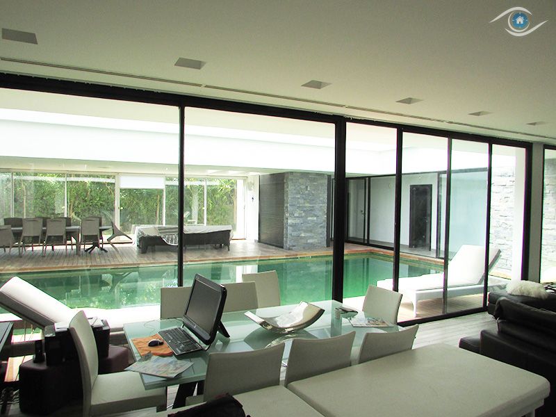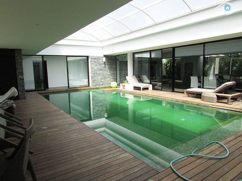 Vision Immobilière vous proposes, Cette villa se distingue par son style moderne très bien orientée, implantée sur un terrain de 750 m², 500 m² habitables entre RDC et étage dans un quartier résidentiel calme 100 mètre de la plage d’Hammamet Nord. L'entrée principale donne sur un jardin gazonné très bien aménagé avec piscine intérieure chauffée . L’entrée donne sur un hall ouvre sur un salon et une salle à manger possédant des baies vitrées qui donne accès à la piscine. Elles se partagent une salle d’eaux commune. La cuisine agencée est aménagée par les éléments de rangement nécessaire (plaque de cuisson, d'une hotte aspirante et d'un four encastré). Un couloir nous mène à la partie nuit, il dépose deux suite parentales est chacun muni d'un dressing et d'une salle de douches. Le 1er étage possédé une suite parentales, meublées par des dressings room, salle de bain, Ouvrant sur un terrasse donne une vue panoramique sur mer. La villa est entièrement équipée de chauffage central et de climatisations. Un abri qui peut contenir deux voitures.
