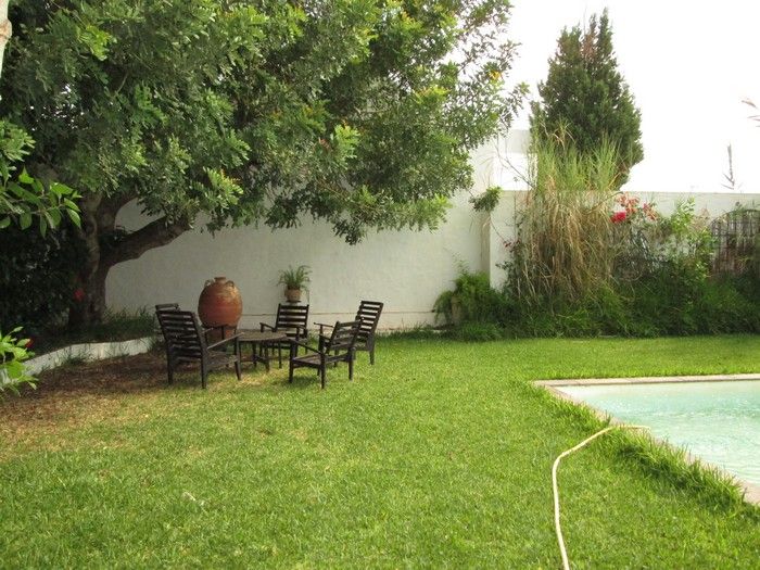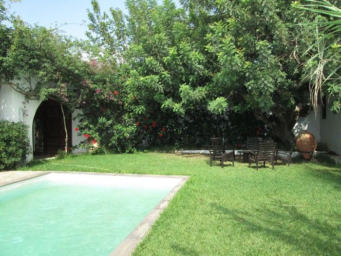 Villa style arabesque, composé d’un grand jardin avec piscine, grand salon, cuisine et sale d’eau au RDC