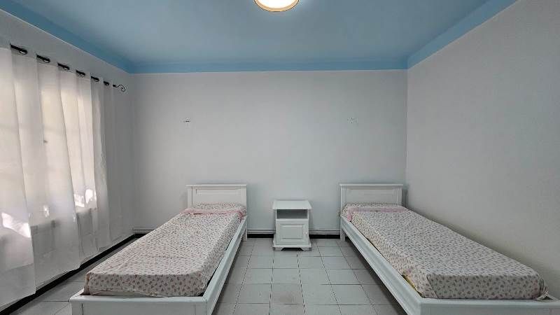 L’appartement comporte un joli salon, une belle cuisine bien équipée, deux chambres à coucher, une SDB commune et un jardin.