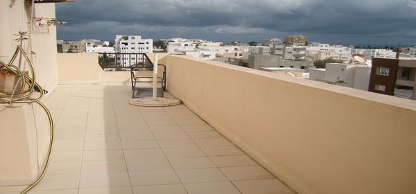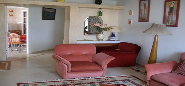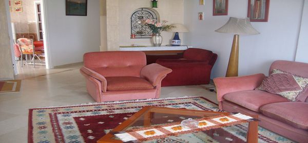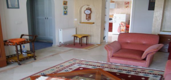 A khzema dans un quartier calme et résidentiel ,un magnifique appartement meublé avec gout,composé d'un salon avec une vue panoramique ,une chambre à coucher,cuisine très bien équipée et agencée avec accès terrasse,salle de bain,chauffage central et climatisation tel:+216 96174271/28080281