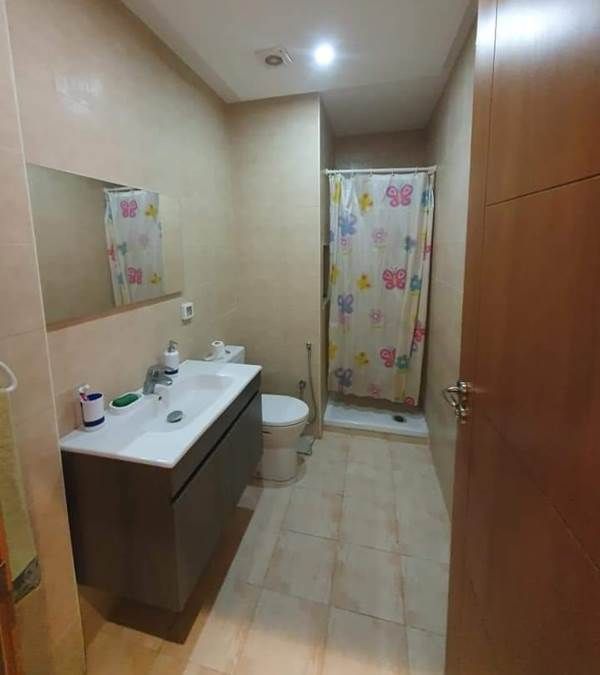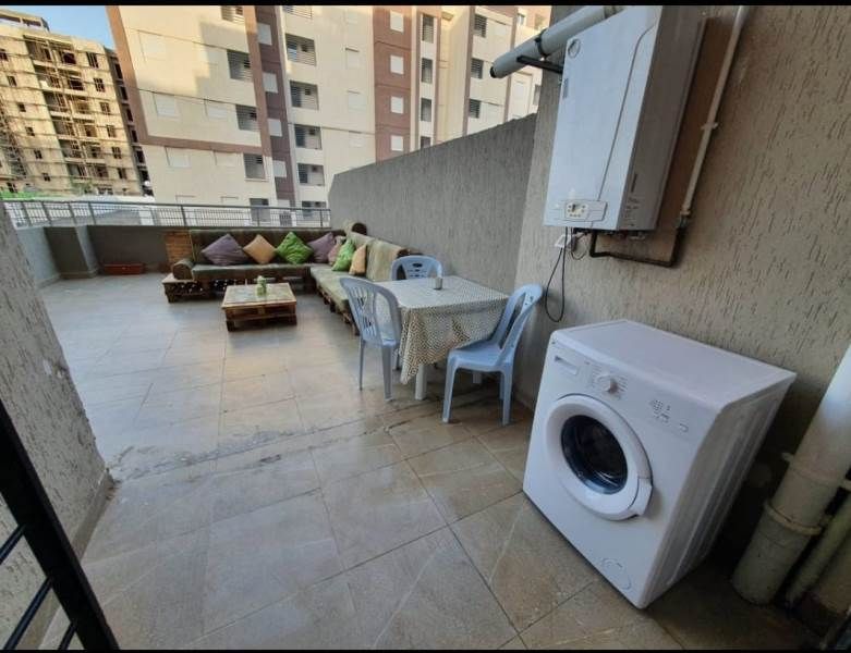 L’appartement se compose d’un salon, une belle terrasse, une cuisine ouverte bien équipée, deux chambres à coucher et une salle de bain.