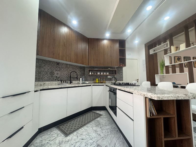 L'appartement lumineux dispose d'une cuisine américaine ouverte sur le salon, d'un séchoir pratique et de deux chambres à coucher avec un lit King size et un lit double orthopedique, une terasse et une SDD moderne.