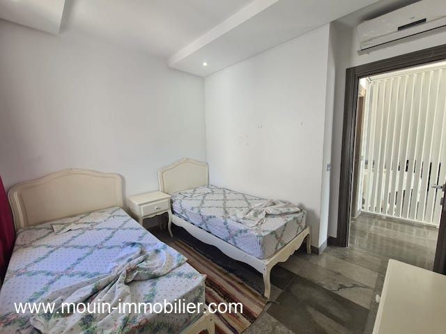 A louer à l’année un bel appartement spacieux et bien lumineux situé au 2éme étage d’une résidence calme est bien sécurisée au niveau de la zone touristique Nord de Hammamet, proche des hôtels de renommés tel que Le Sultan et La Badira.