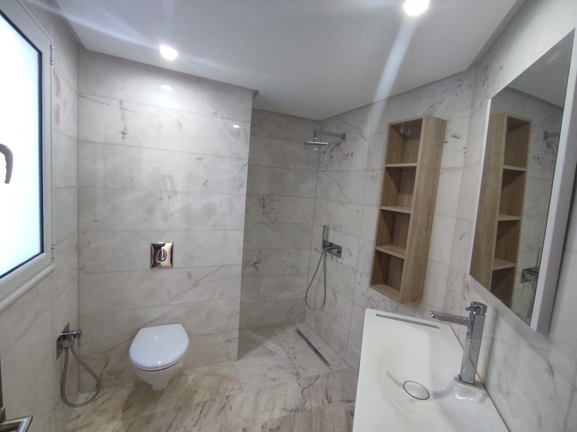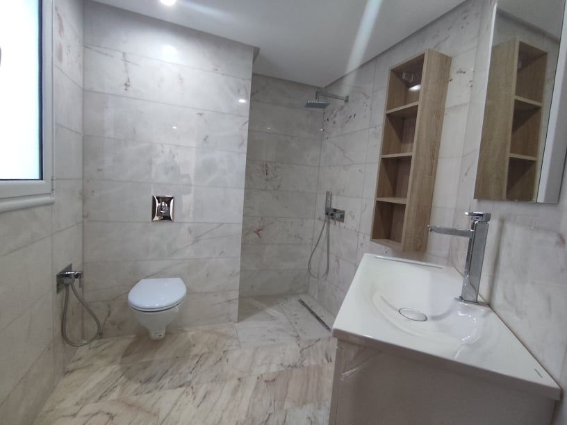 L’appartement est de type S+2 d’une superficie de 134 m² dont le prix est à 600 000 DT inclue deux places de parking sous sol et un cellier.