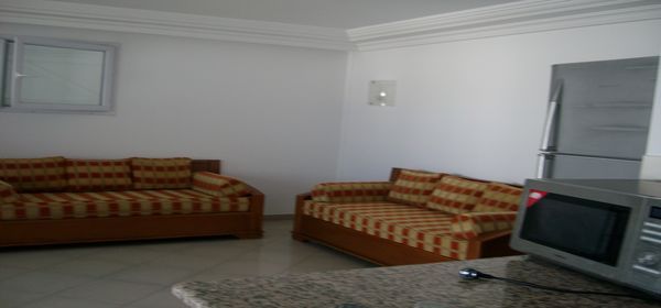 A Tantana -Chott Mariam dans un quartier calme et résidentiel à2 mins de la plage un bel appartement en top d'une villa ,meublé de type s+2 ,composé d'un salon avec accès terrasse vue mer,cuisine à l’américaine,deux chambres à coucher,salle douche, salle d'eau ,chauffage central,climatisation ,la villa est gardée par des cameras de surveillance