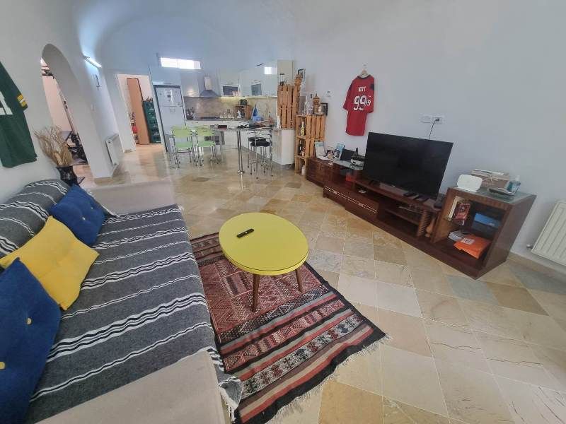 A louer pour toute l'année chez l'agence TPS IMMOBILIERE Hammamet, un joli appartement au RDC de type S+2 dans une résidence sécurisée et pas loin de la zone du Miramar, cet appartement se caractérise d’un style mélangé entre une architecture typique et contemporaine, des voûtes au plafond et du marbre par terre.