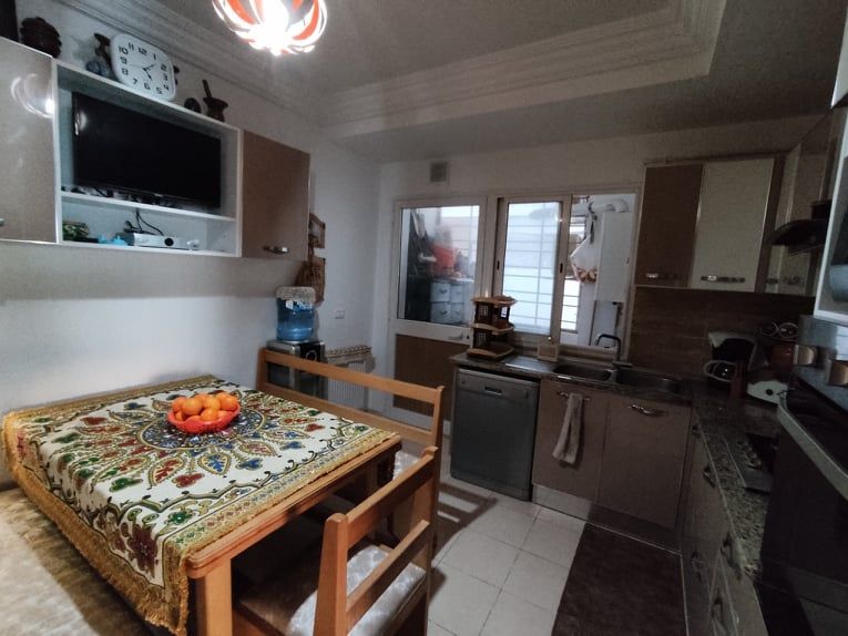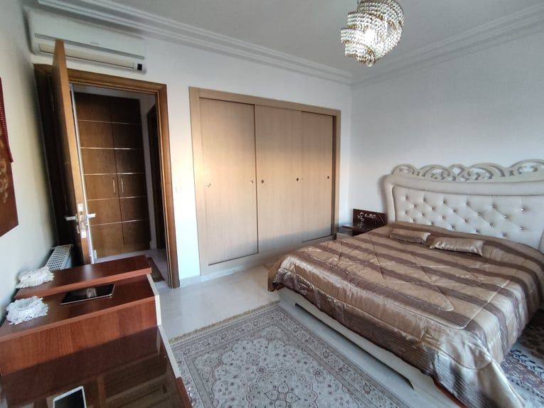 L’appartement est situé au 2ème étage, il comporte un grand salon avec une terrasse, trois chambres à coucher, une salle de bain avec Jacuzzi, une salle d’eau pour les invitées et une belle cuisine moderne avec séchoir .