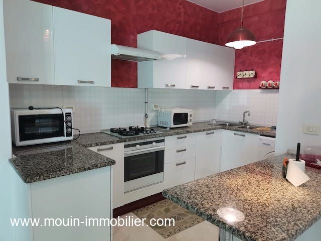 A louer à l’année un très joli appartement meublé de haut standing situé à Hammamet dans une belle résidence gardée et sécurisée, à 5 min de la plage et à 10 min du centre-ville.