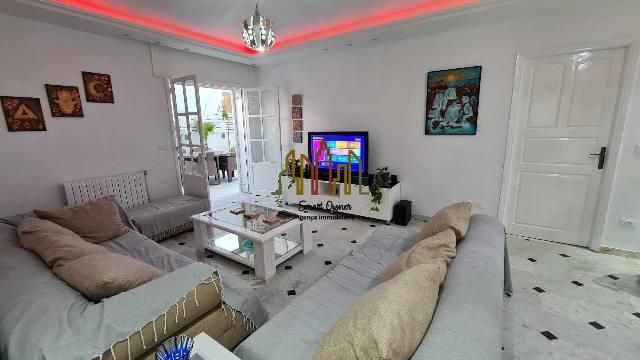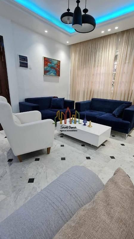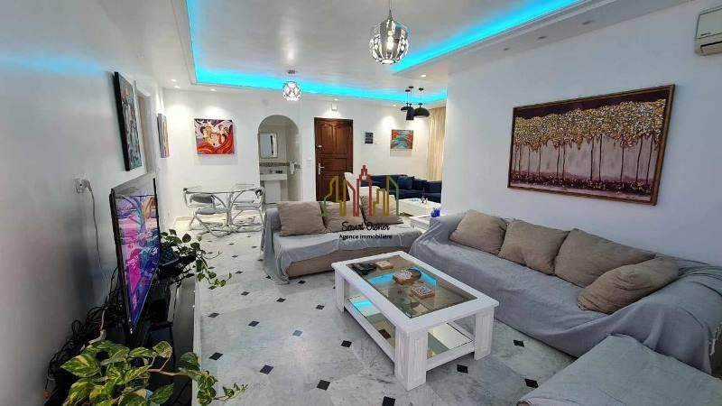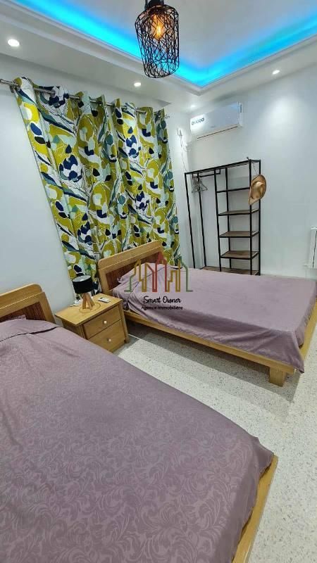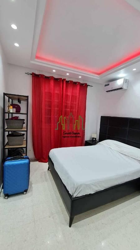 A louer pour une courte durée chez l’agence SMART OWNER immobilière Hammamet, un bel appartement de type S+2 sis au rez de chaussée situé dans une résidence bien gardée à Mrezga Hammamet Nord à 5 minutes de la plage et de la zone touristique.