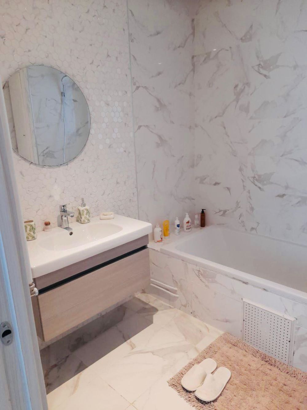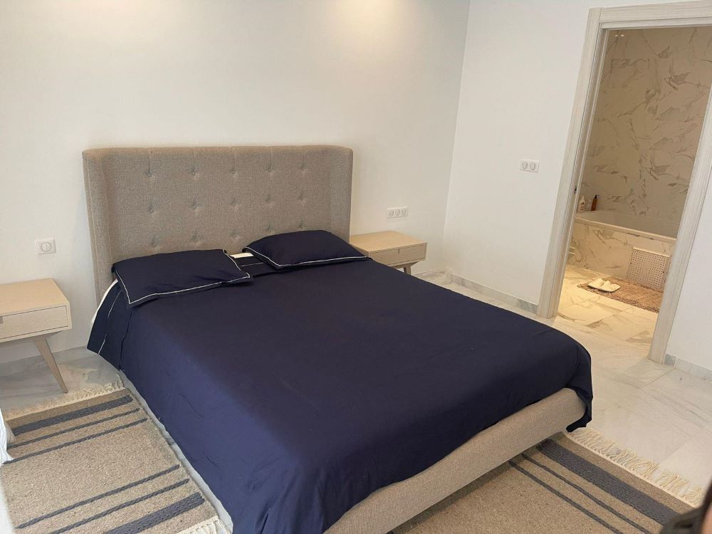 L’appartement se compose d’un salon, une belle terrasse, une cuisine bien équipée avec séchoir, une suite, deux chambres à coucher et deux salle de bain.