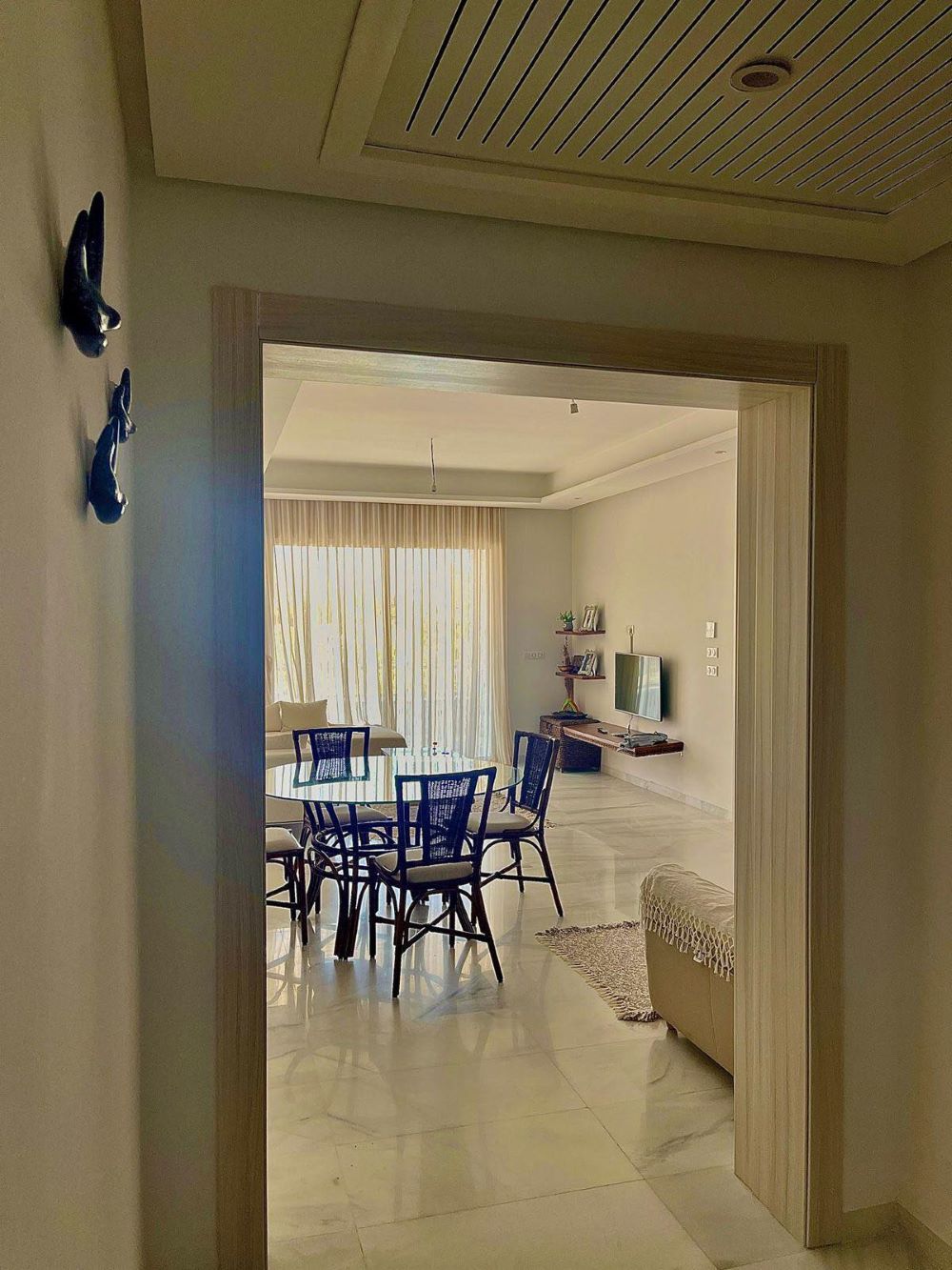 L’appartement se compose d’un salon, une belle terrasse, une cuisine bien équipée avec séchoir, une suite, deux chambres à coucher et deux salle de bain.