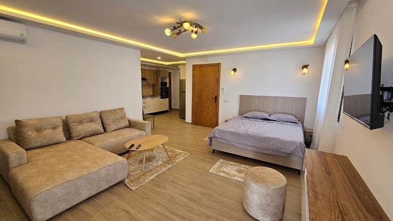 Cet appartement est composé d’une pièce dont il y a une chambre à coucher, un coin salon, une cuisine bien équipée et une salle de bain avec une douche.