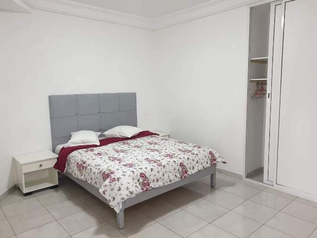A louer à l'année un bel appartement de type S+2 situé à Hammamet dans un quartier résidentiel et acces-sible aux commerces et commodités de vie.
