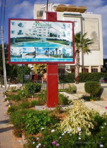 Dans une residence (m.paradis) pieds dan l'eau, plage prive� a chatt mariam, 5min de la station balneaire du port kantaui a louer pour relascation au bord de la mer un coquet appartement meubl� di 63m s+1 rez de chausse� entre� independante avec cadre tr�s intime,calme, e surtout propre garde� 24/24.