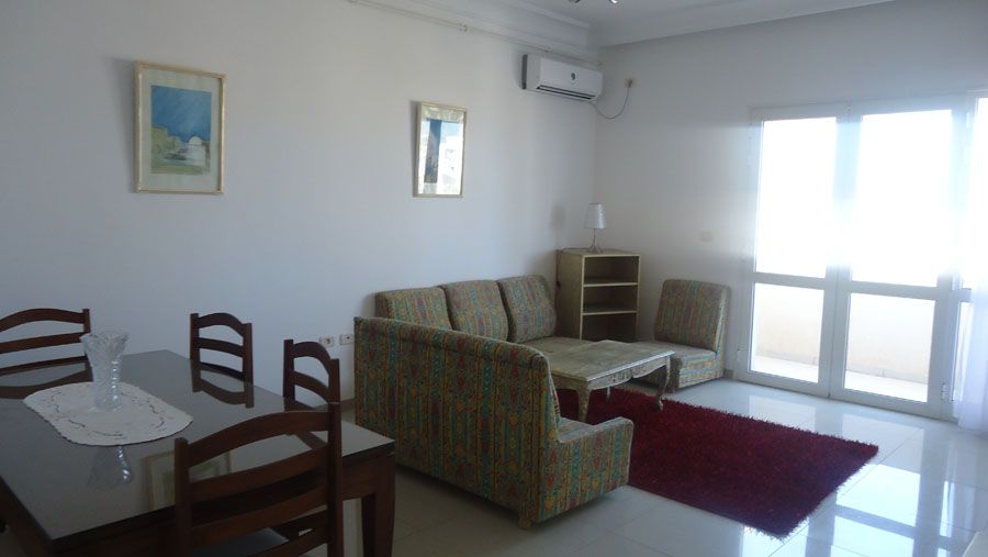 l'agence immobilière elkantaoui met en location à l'année un beau appartement meublé Standing à la résidence Ahmadia 5 à Menchiya Hammam sousse près de tous les commodités couvert de 130 m².