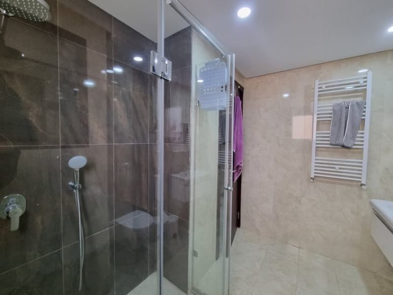 L'appartement comporte un salon-salle à manger avec une grande terrasse à l’extérieur d’une superficie de 50 m², deux chambres à coucher avec deux placards, une salle de bain avec une douche et une belle cuisine moderne avec un séchoir.