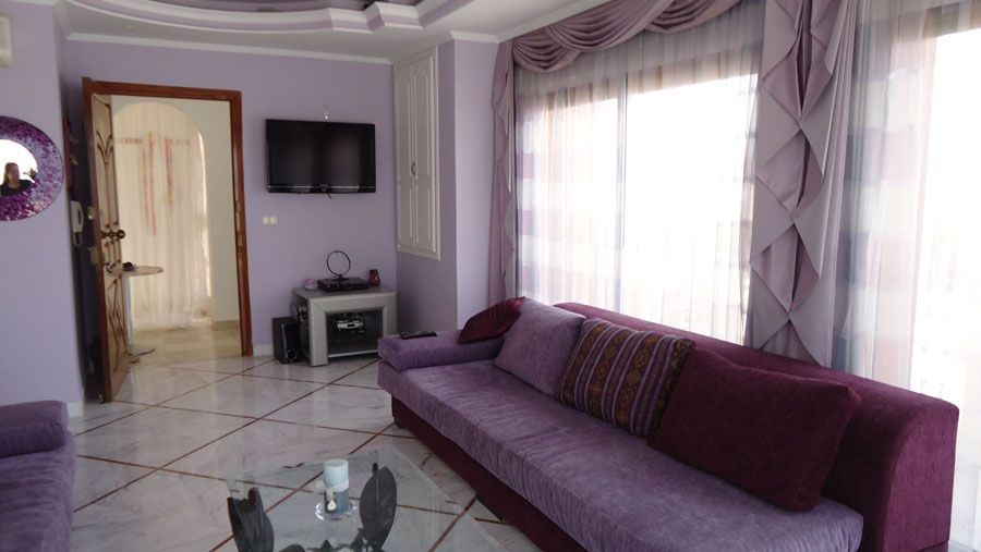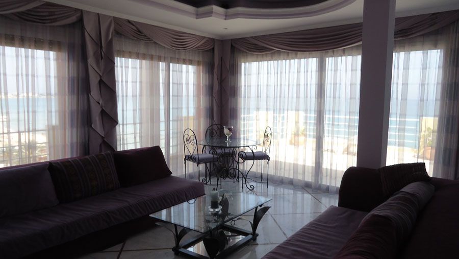 l'appartement a une superficie couverte 70 m². il est composé de deux chambre à coucher , Salon avec vue mer, cuisine équipée et douche et un grand terrasse de 80 m² vue de mer