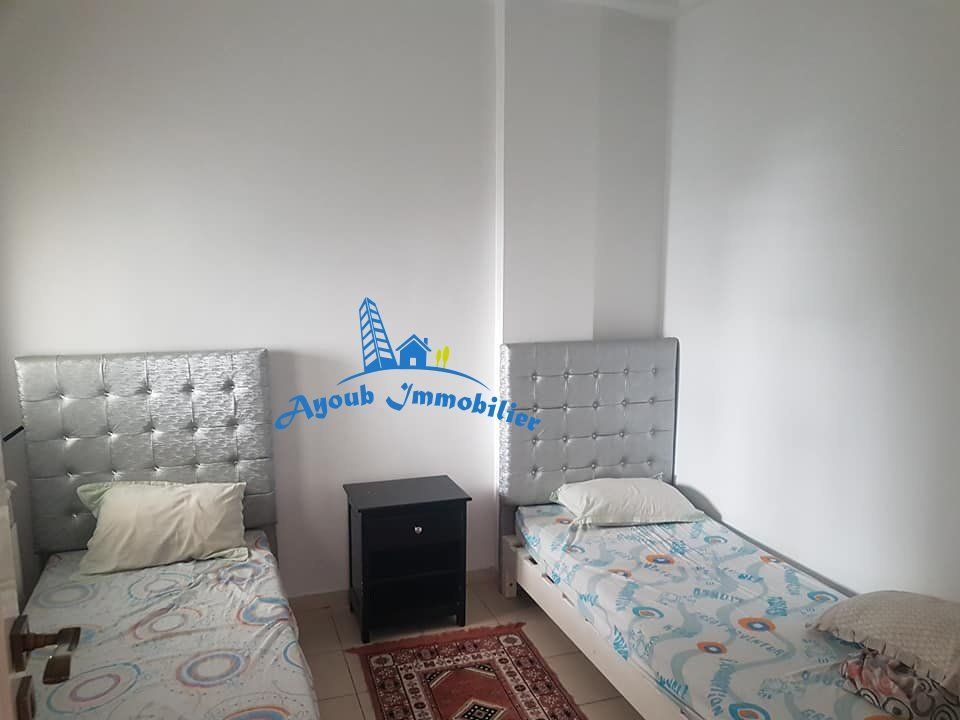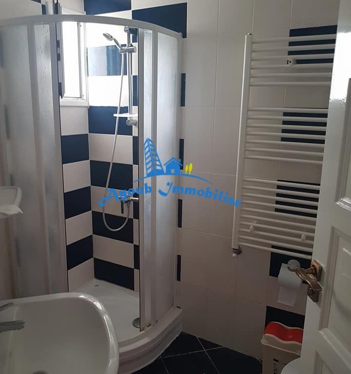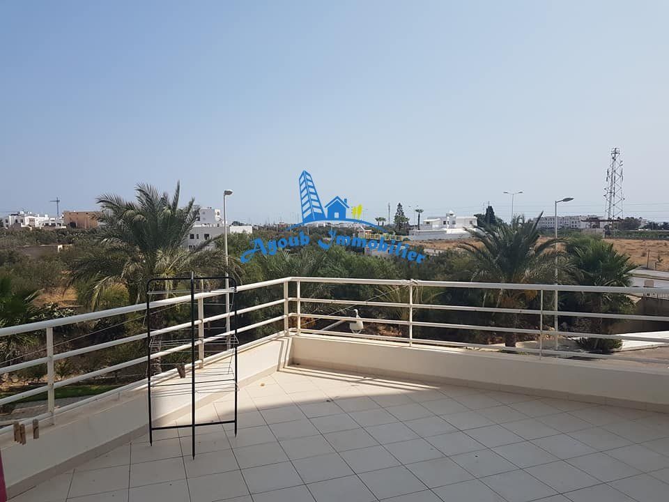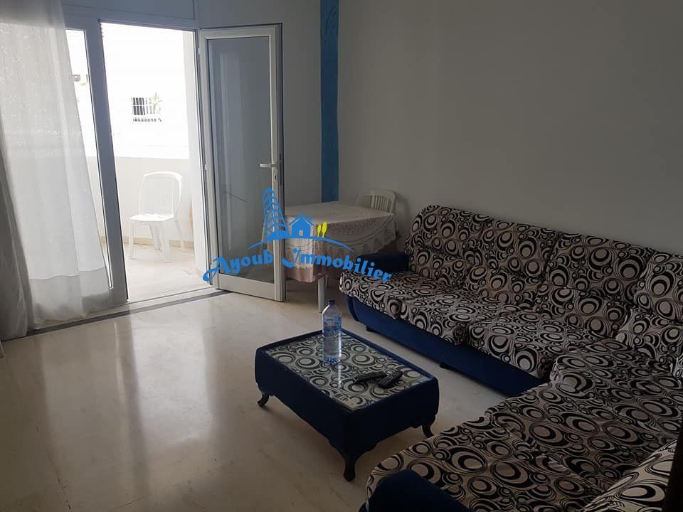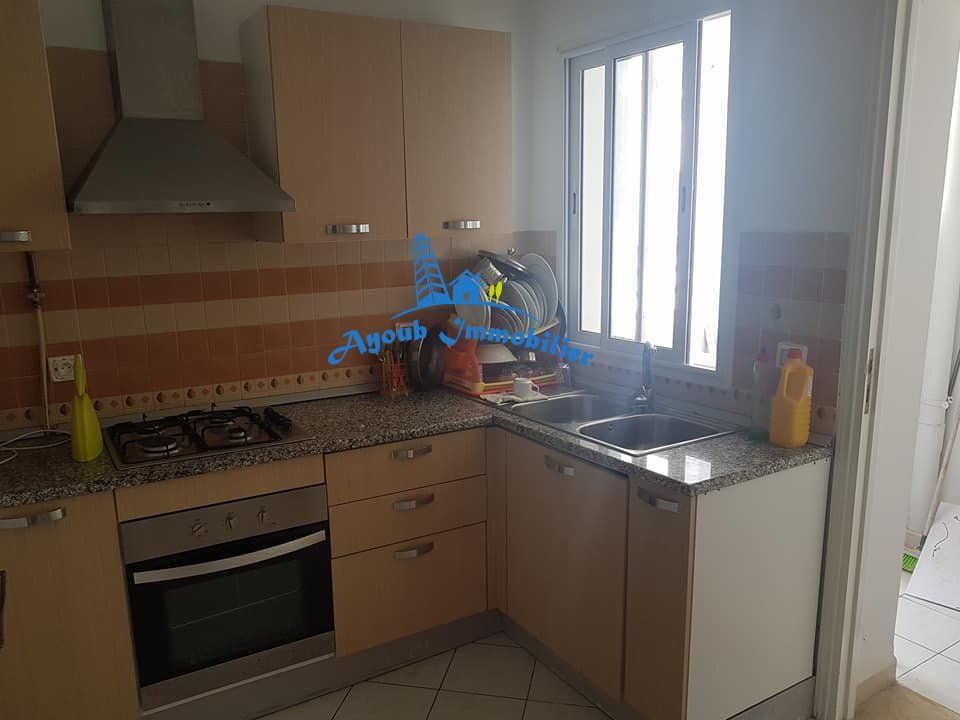 Bel appartement à vendre à Hammamet, zone Mrezga, S+2 chauffées et climatisées avec une grande terrasse donnant une vue de mer, un salon avec balcon, une cuisine équipée et aménagée avec séchoir... L'appartement se situe dans une résidence gardée et sécurisée avec une piscine commune et un ascenseur. Prix 190.000dt.