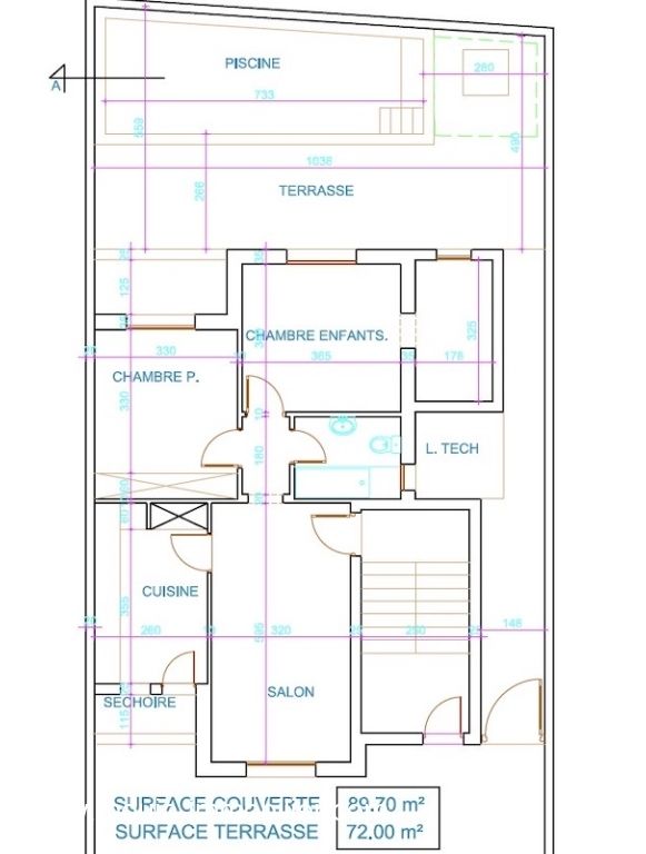 Il offre un salon, une cuisine équipée et aménagée d’un séchoir, une salle d’eau et deux chambre à coucher donnant sur la terrasse et piscine (72m2).