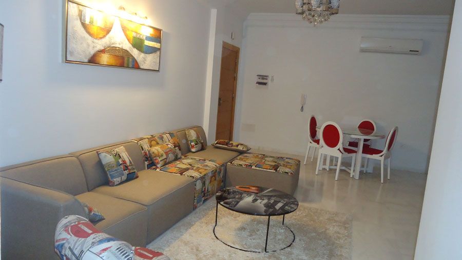 l'agence immobilière elkantaoui met en location à l'année un appartement de haut standing d'une superficie 150 m² bien meublé au 1 er étage d' une résidence calme et gardée 24/24 à kantaoui. l'appartement est composé de 3 chambres à coucher, salon,cuisine bien équipée, salle de bain avec jacuzzi