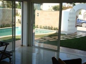 Coquette villa jumelée avec piscine à 200m de l'une des plus belles plages de la Tunisie. Au RDC: grand SSAM avec belle cheminée, une chambre et SDE. A l'étage suite parentale et deux chambres. Chauffage central et climatisation dans toutes les chambres. Revêtement noble, mobilier de qualité. Résidence privée et gardée. Année de construction Juin 2008