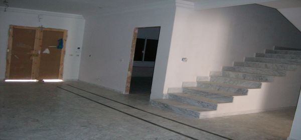 A Kantaoui derrière New Fly et pas loin de la plage une belle villa toute neuve en cours de finition ,style américain,composée au rez de chaussée d'un spacieux salon avec terasse donnant dur le jardin,chambre à coucher,cuisine avec accès jardin,salle d'eau,débarrât,au 1er étage trois chambres à coucher, salle de bain,débarrât ,suite parentale,au 2éme étage un studio (salle douche kitchenette,salon),une grande terrasse avec une belle vue,garage avec porte électrique,System d'alarme,chauffage central et gaz de ville.