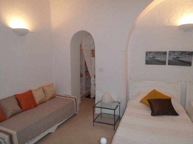 Le dernier niveau comprend un petit salon, en voûtes croisées également, donnant sur les toits conférant une vue sur tout Hammamet.