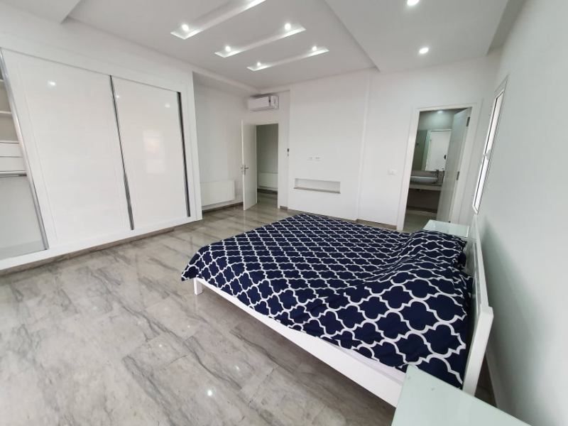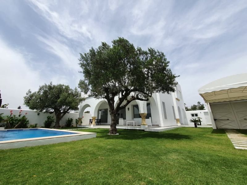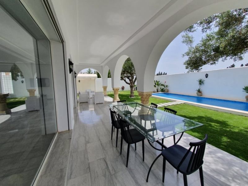 A louer pour les vacances chez l'agence TPS Immobilière Hammamet, une magnifique villa toute neuve alliant le style moderne avec le style arabesque avec des arcades et la belle architecture.