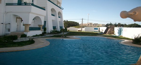 A Tantana _Chott Mariam à quelques pas de la plage dans une résidence de charme style arabesque avec piscine deux bels appartement de type s+2 100 m² composé d'un salon avec balcon,deux chambres à coucher, salle douche,chauffage central. S+1 70 m² composé d'un salon avec balcon vue mer et piscine,cuisine ouverte sur le salon,chambre à coucher avec placards,chauffage central , place parking avec box de 5 000 euro /10 mille dinars à 7500 euro 15 mille dinars