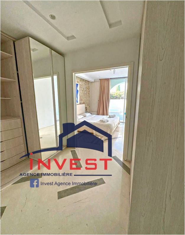 À vendre un duplex S+3, rénové récemment, situe au Golden Tulip. Il bénéficie d’une piscine, d’un jardin et d’une terrasse offrant une belle vue sur la mer.