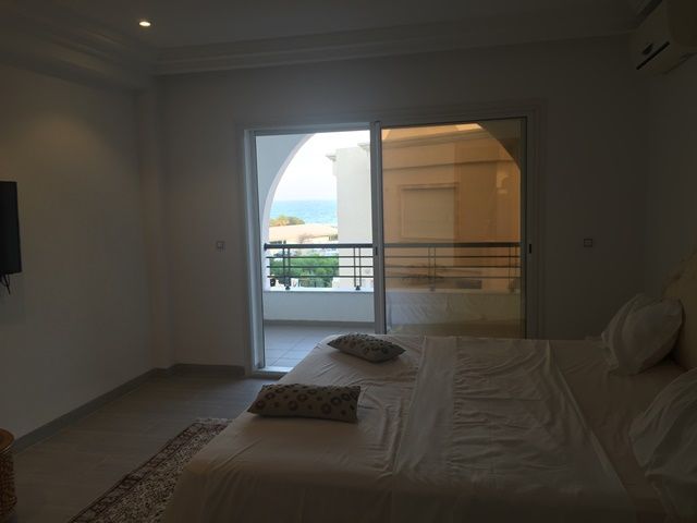 A vendre chez l'agence TPS Immobilière Hammamet, un duplex pieds dans l'eau de très haut standing avec une belle vue sur mer, bien situé à Hammamet Nord à proximité de la zone Mimosa dans une résidence avec ascenseur et une piscine collective.