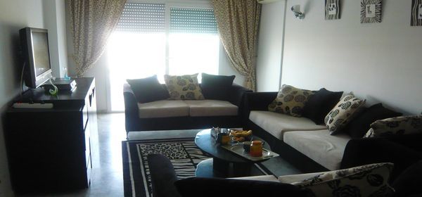A louer à l'année à Sousse, un bel appartement moderne meublé vue mer, au 3ème étage avec ascenseur, dans une résidence pied dans l'eau avec piscine, composé d'un salon avec grand terrasse vue mer et vue ville, deux chambres, cuisine bien équipée et aménagée, WC,salle de bain, parking au sous sol . 1500dt/mois