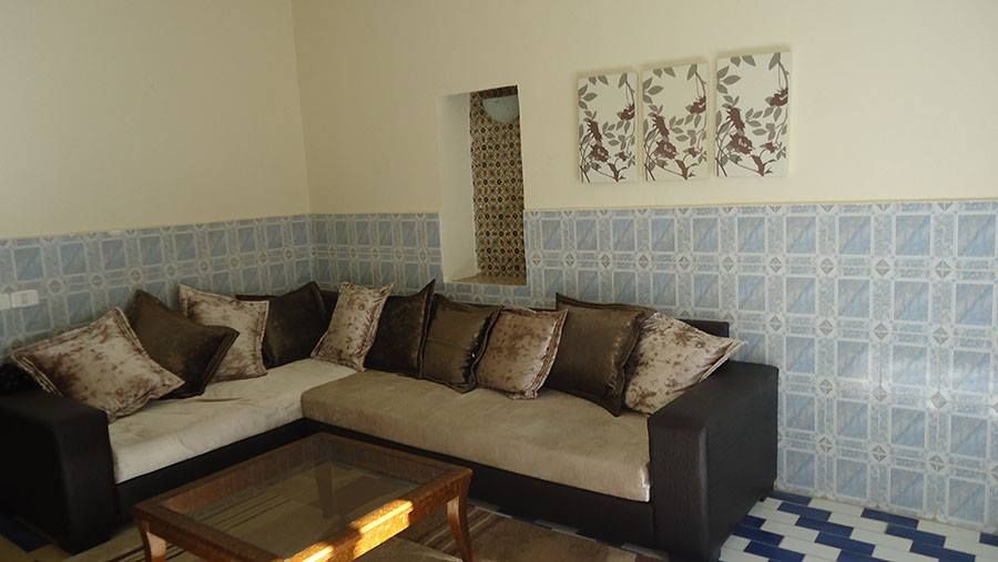 l'agence immobilière elkantaoui met en location un joli appartement s+1 bien meublé à maison de la mer marina kantaoui sousse au RCH d'une superficie 80m² composé d'une chambre à coucher, salon, kitchenette, salle de bain avec un joli terrasse vue de jardin. prix de location 700Dt/mois.