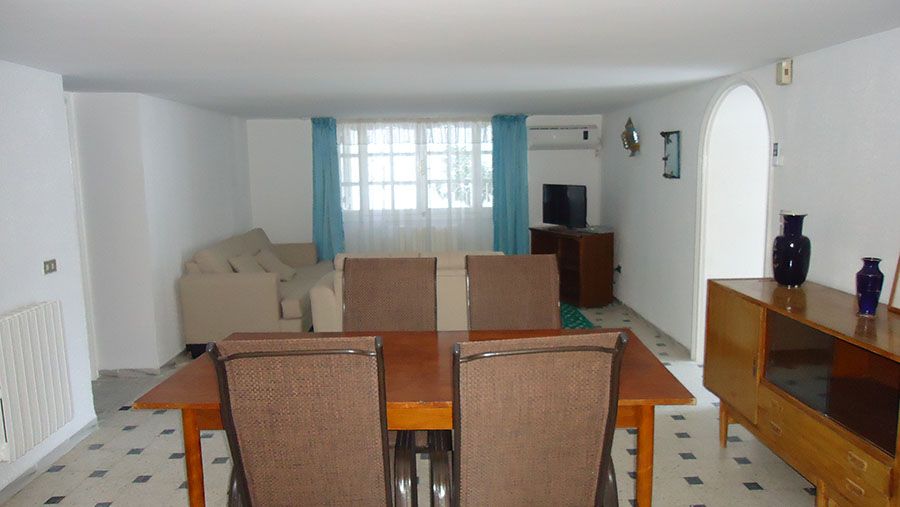 l'agence immobilière elkantaoui met en location un beau rez de jardin bien meublé à Kantaoui dans une résidence et prés de tous les commodités d'une superficie 120m² composé de 2 grand chambres à coucher, grand salon, salle à manger, cuisine indépendante équipé, salle de bain, un joli terrasse avec chauffage central , climatisation.