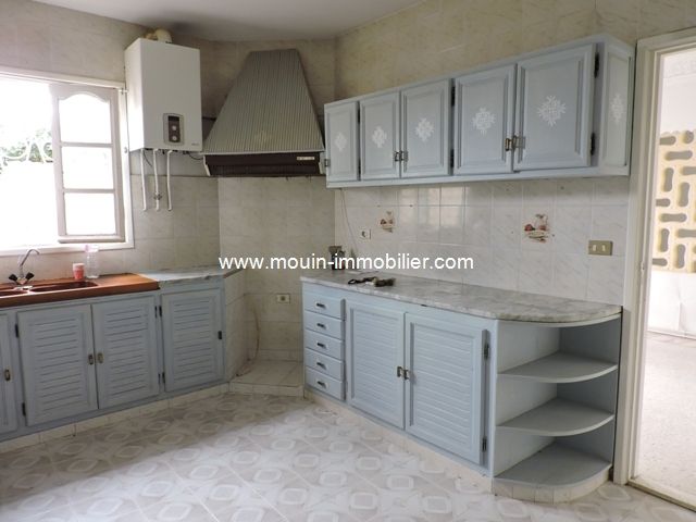 A louer à l'année une maison non meublée située dans un quartier résidentiel à Hammamet Nord. Elle se compose d'un hall d'entrée, un salon, une salle à manger, une cuisine, trois chambres à coucher, une salle de bain et une salle d'eau.