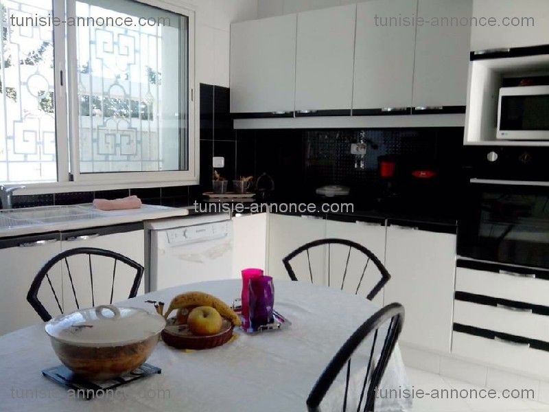 a louer,à l'année, à soukra les pins, dans un environnement très calme et pas loin de toutes commodités, une superbe maison meublée avec un grand salon, 4 chambres à coucher dont l'une est une suite parentale avec salle de bain, une salle d'eau et une salle d'eau avec cabine de douche, une cuisine équipée de toutes prestations nécessaires avec grande terrasse, jardin qui fait le tour de la maison, abris de voiture et système d'alarme.