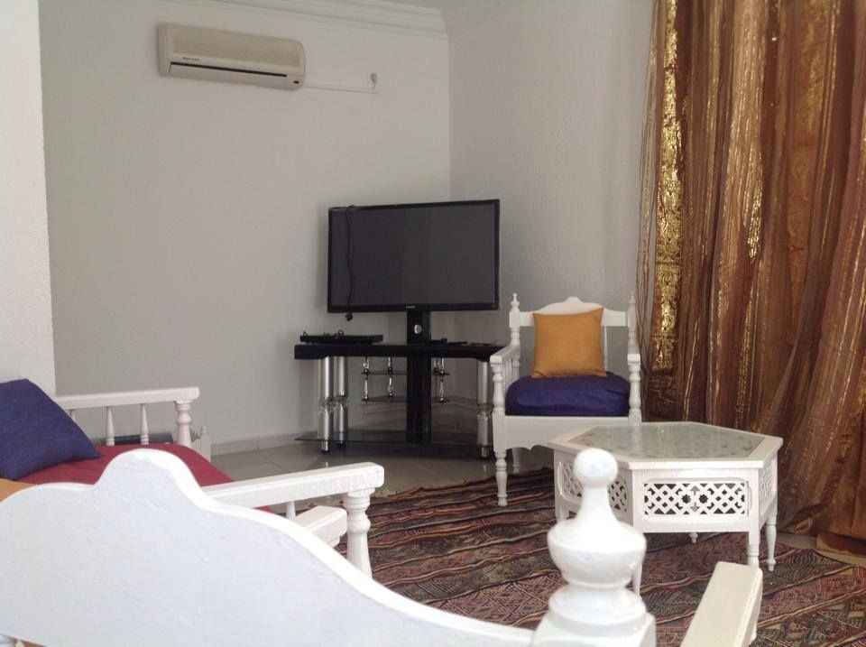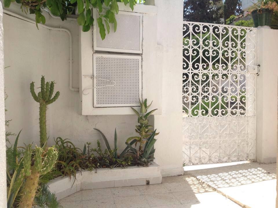 Nous proposons à la location, à La Marsa Corniche, à 50 mètres de la plage, à proximité de l’hôtel Plaza Corniche, d'un lycée Français et de toutes commodités, au sein d'un quartier résidentiel très calme et d'excellent voisinage, une maisonnette plein pied style arabesque, semi meublée, composée d'un salon meublé avec plasma, une chambre à coucher meublée d'un lit 2 places et un dressing, une cuisine équipée( gaz, réfrigérateur, rangements etc) une seconde pièce vide, une salle de bain et une vaste jolie terrasse.