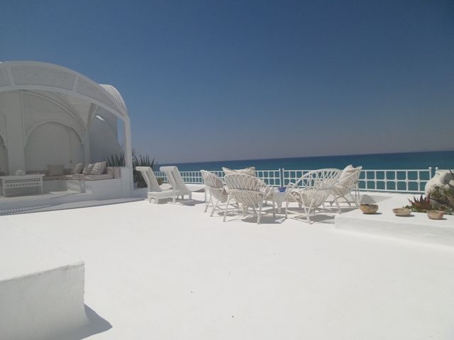 A louer pour les vacances chez l'agence TPS IMMOBILIERE Hammamet, une belle villa avec piscine située dans un quartier calme, à 10 minutes du centre ville et des plages, et 5 minutes de l'autoroute Tunis/Sousse. Villa de style mauresque tout en toits voûtés et arcades, 220m² bâtie sur un terrain de 350m² ; composée au RDC : 1 suite parentale avec salle d'eau (douche), 2 chambres, salle d'eau avec douche, salon/salle à manger avec une cheminée, cuisine, terrasse. Au 1er étage : 1 chambre avec salle d'eau, belle terrasse. Entièrement climatisée et équipée en chauffage central, alarme de sécurité... Meublée avec raffinement!!