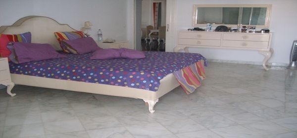 A Sousse dans un emplacement excellent au coeur de la zone touristique ,un appartement chic composé d'un immense séjour avec une terrasse vue panoramique de la mer et les hotels ,deux suites parentales avec vue mer ,cuisineà l'americaine bien agencée et equipée ,chauffage central,climatisation,place parking au sous sol.