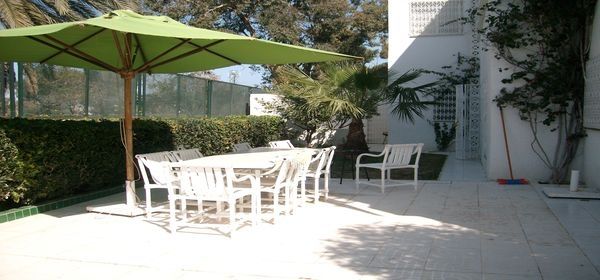 une superbe villa style américain avec jardin et piscine à Kantaoui-Narjess 1,bien meublée composée au rez de chaussée d’un spacieux séjour avec terrasse vue jardin et piscine ,salle à manger avec accès jardin ,cuisine bien équipée et agencée, salle d’eau ,à l’étage quartes chambres à coucher, deux salles bain, des balcons vue jardin et golf. Garage au sous sol.