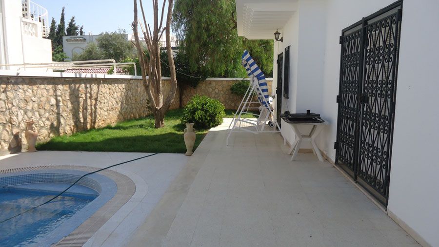 la villa est entourée par un grand jardin gazonné bien élaboré et une piscine.