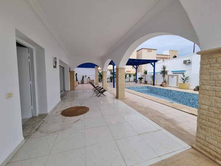 A louer à l'année chez l'agence TPS Immobilière Hammamet, une villa avec piscine de plain-pied, bien située à Hammamet centre, à 400 mètre de la plage et proche de tout commerce.