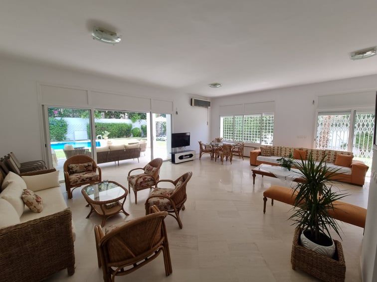 A vendre chez l'agence TPS Immobilière Hammamet, une belle villa avec piscine construite sur deux niveaux, très bien située à Yasmine Hammamet.La villa est composée au rez de chaussée d’un grand salon, une suite pour les invités, une cuisine aménagée et équipée, une salle de bain et une chambre pour le personnel.Quant à l'étage, il comporte un salon,une cuisine, une belle terrasse et quatre suites avec leurs salles de bains et dressing.A l’extérieur, vous bénéficiez d’une belle piscine avec débordement, une terrasse aménagée, un joli jardin gazonné, une deuxième cuisine, une salle de douche et un abri pour trois voitures.La villa est équipée de chauffage central et des climatiseurs même dans la cuisine.Pour plus d'informations, veuillez SVP contacter Mme Emna aux : 00216 28.605.016 / 00216 52.631.000.