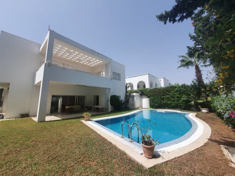 A vendre chez l'agence TPS Immobilière Hammamet, une belle villa avec piscine construite sur deux niveaux, très bien située à Yasmine Hammamet.