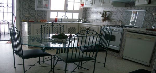 A louer à l'année à Hammam Sousse dériere l'hotel Cleopatre, une coquette villa, meublée avec goût composée d'un séjour, un salon, une salle à manger avec une terrasse donnant sur le jardin, trois chambres, une cuisine aménagée et équipée, une salle de bain, un WC indépendant. La villa est entourée par un joli jardin. Chauffage central, climatisation, gaz de ville. Un garage.